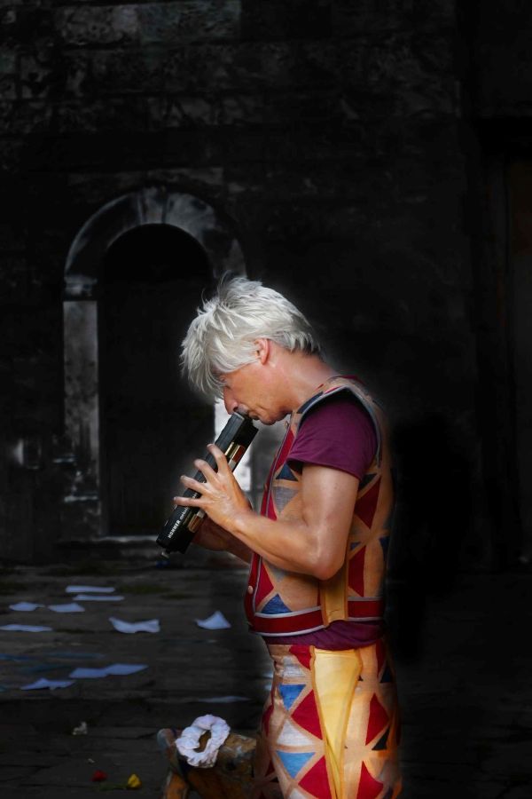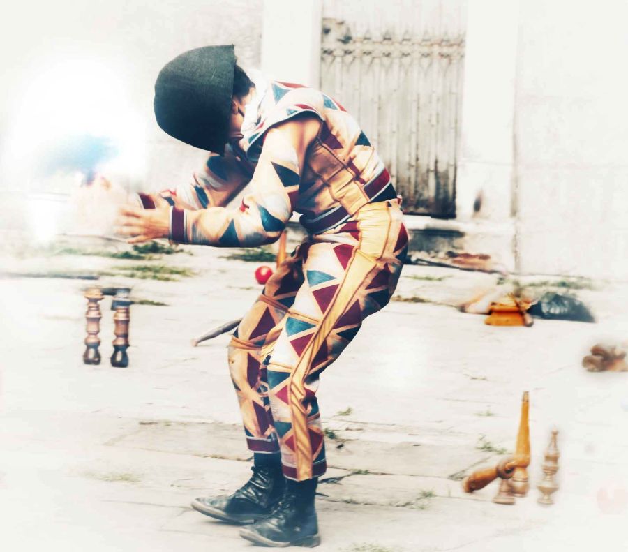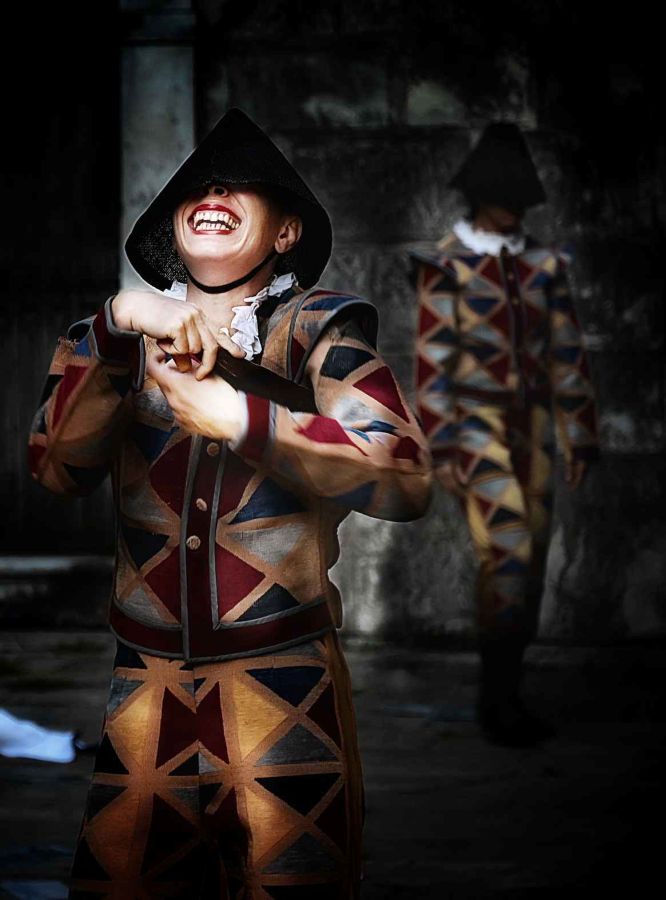 Allora ecco a Voi, la capriola! Arlecchino senza parole nell'eco della piazza di una città ideale, metafisica. Un caleidoscopio sull'Adesso e sul senso del fare arte oggi. Un Paese che è nato da tanti pezzi, che piano piano un'aria con il tempo ha unito: in esso Arlecchino si specchia come nel celebre dipinto di Picasso invitandoci a riflettere sulla condizioni di noi umani. Che fare di fronte allo spettacolo del mondo frantumato? Come è potuto succedere? Ricostruire?...Cosa può rinascere dalle macerie?