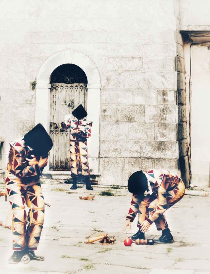 Un lavoro sulla frammentazione del reale e delle identità, sul nostro Belpaese tra i suoi vizi e le sue virtù. Ci viene incontro Arlecchino, uno e trino,...nel frattempo si è moltiplicato, li ho visti per davvero? essi incarnano le molteplici sfaccettature di un personaggio che ci interessa per la sua ambiguità. In scena una danzatrice, un musicista, una marionetta e una marionettista, tra ombre, presenze e riflessi di un'Arlecchino caleidoscopico in dialogo costante con il paesaggio sonoro dal vivo e con i resti di una città immaginaria, nel tentativo di ricomporne i pezzi.
